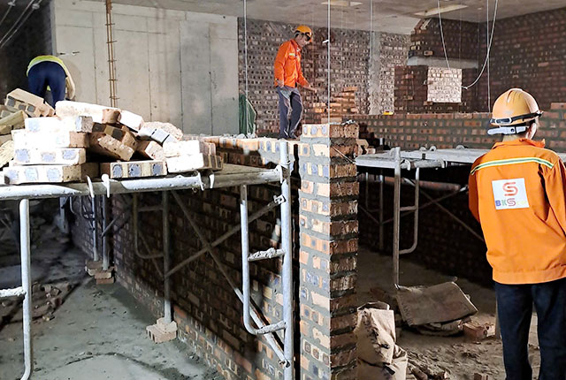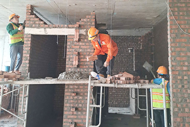 Toà NO3. Nhiều tầng đã hoàn thiện xây tường và thi công kỹ thuật