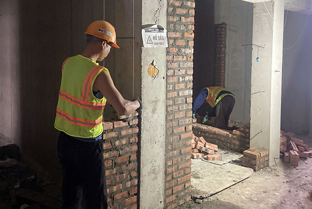 Toà NO3. Thi công xây tường tầng 26